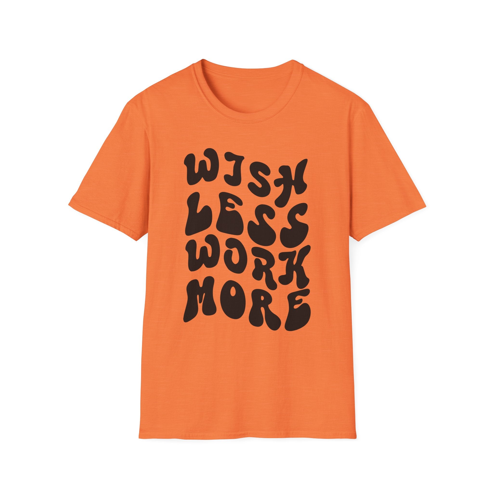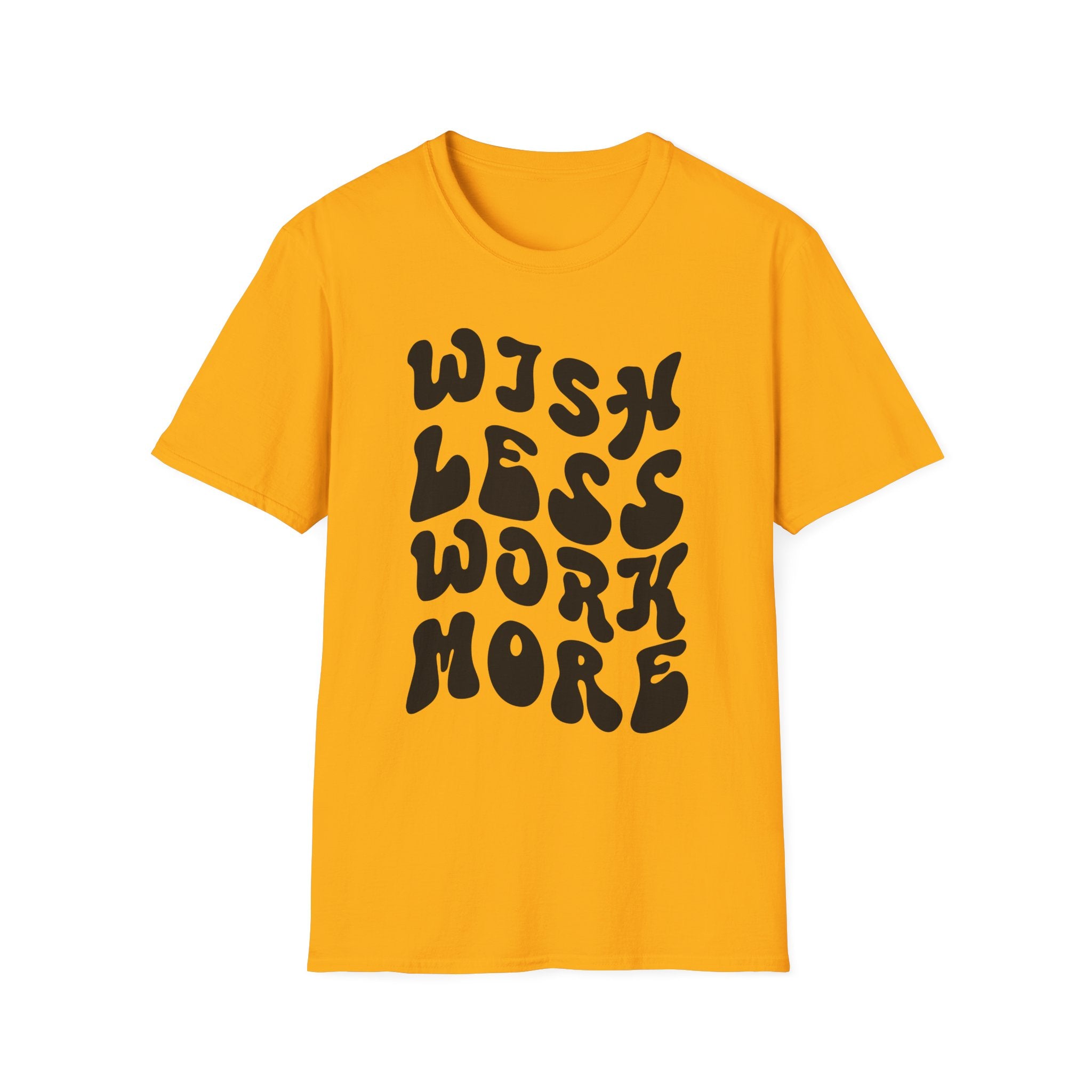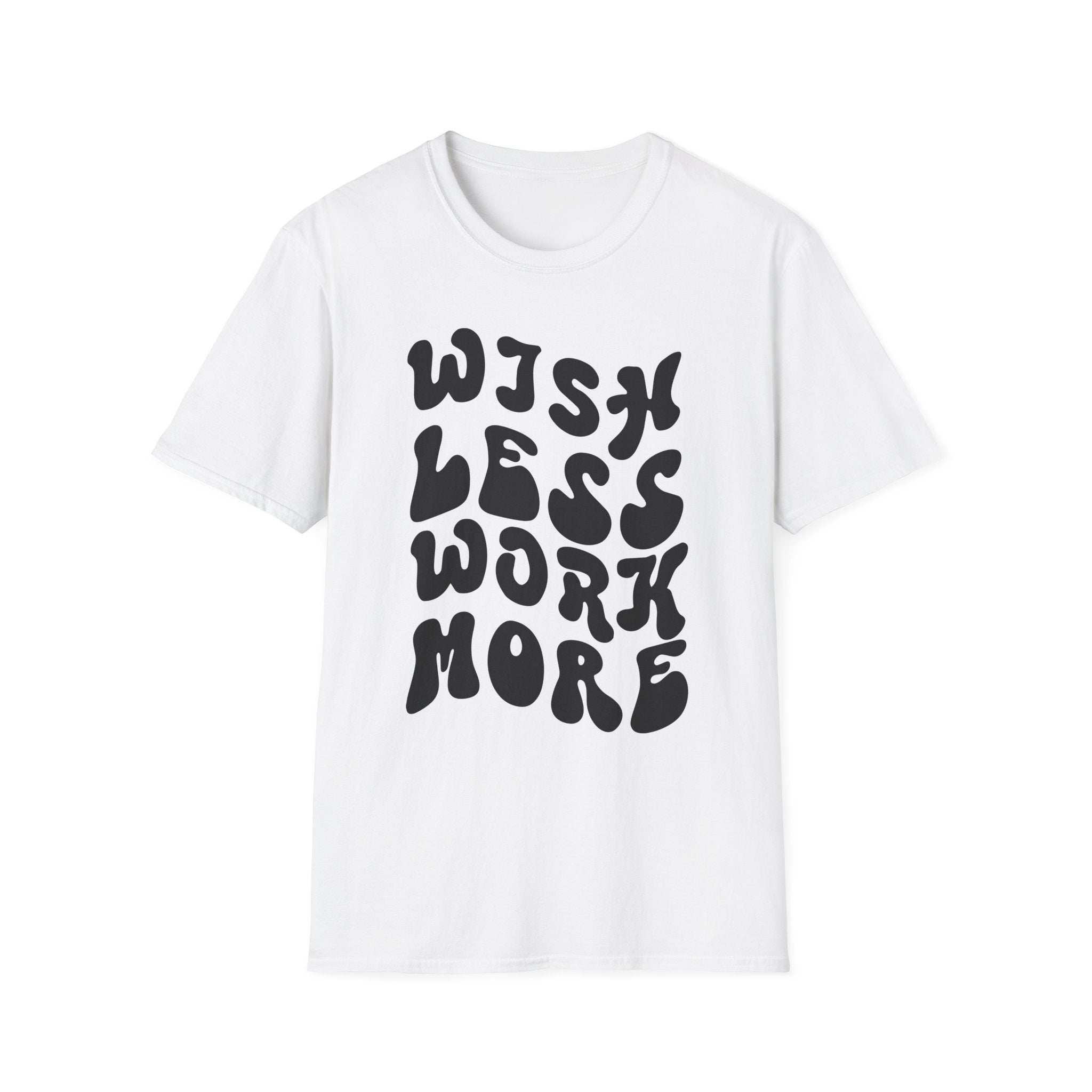 Motivational Quote T-Shirt - 'Wish Less, Work More' Unisex Softstyle Tee