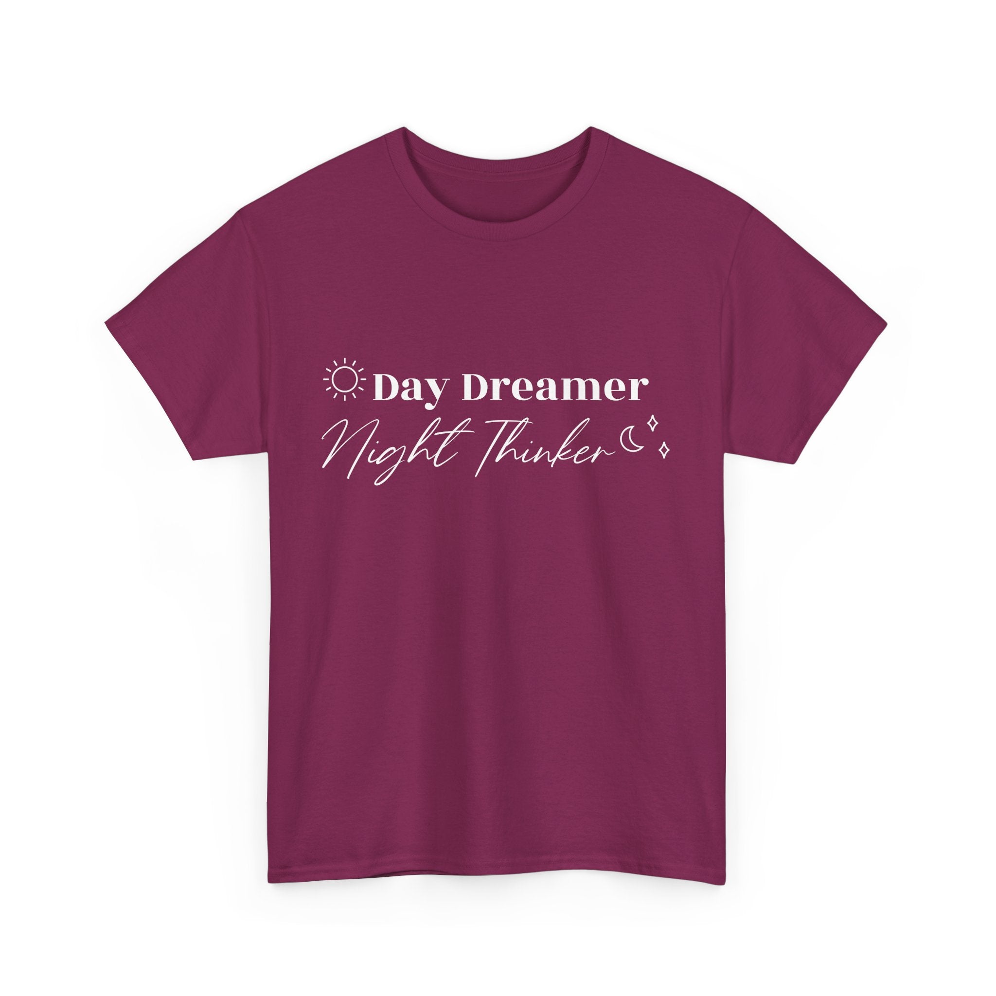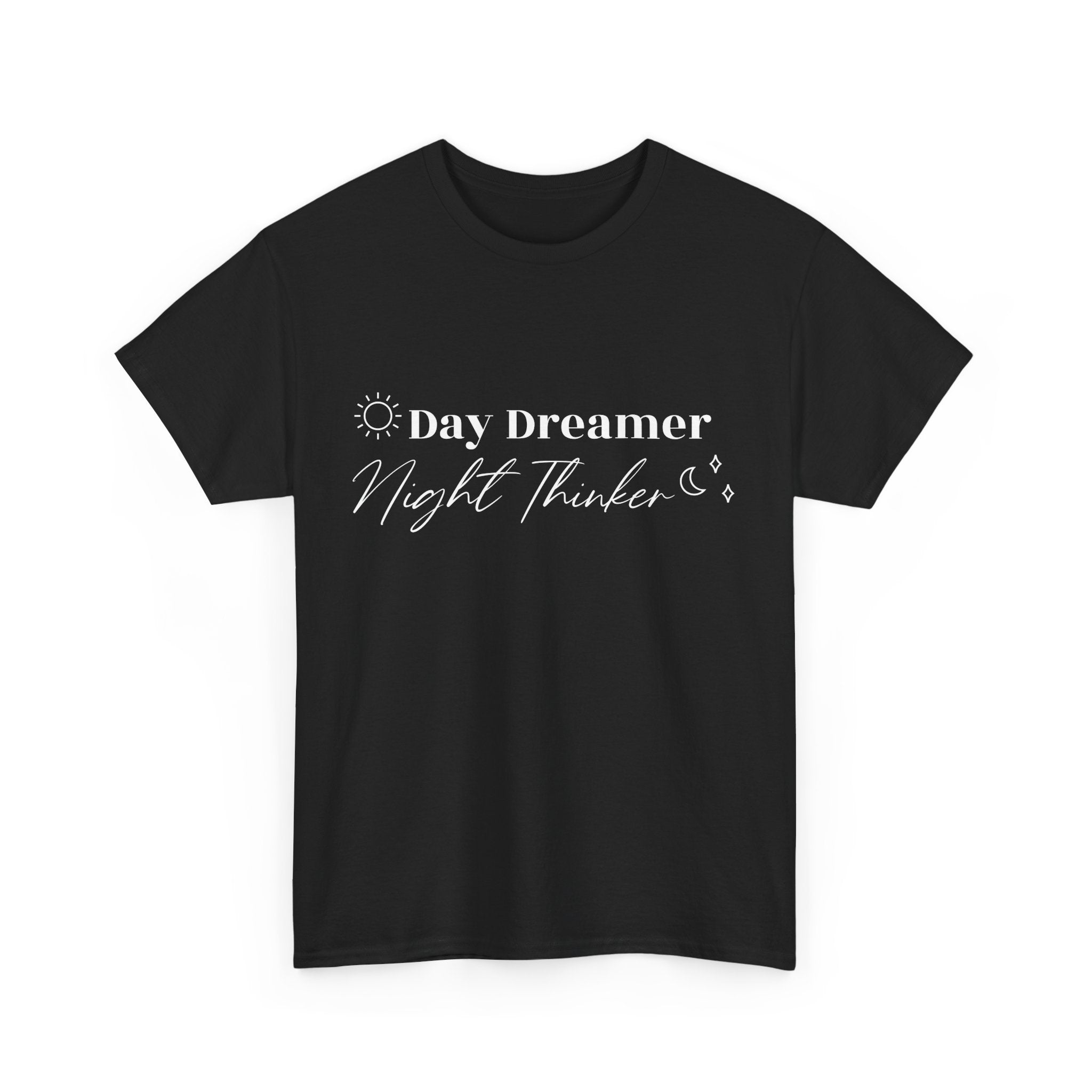 Printed Day Dreamer Night Thinker Quotes Unisex Heavy Cotton Tee - Cozy Casual Tee for Dreamers