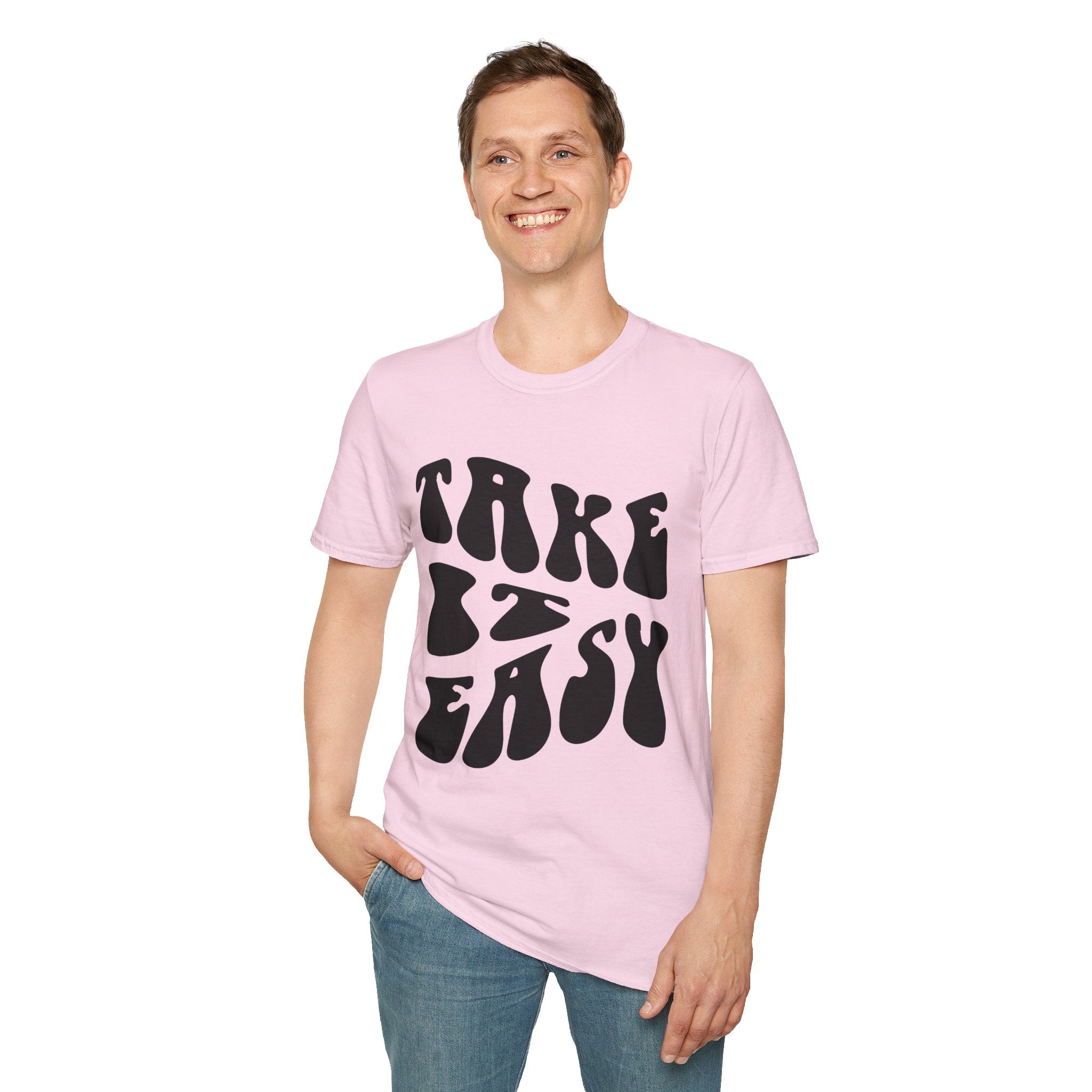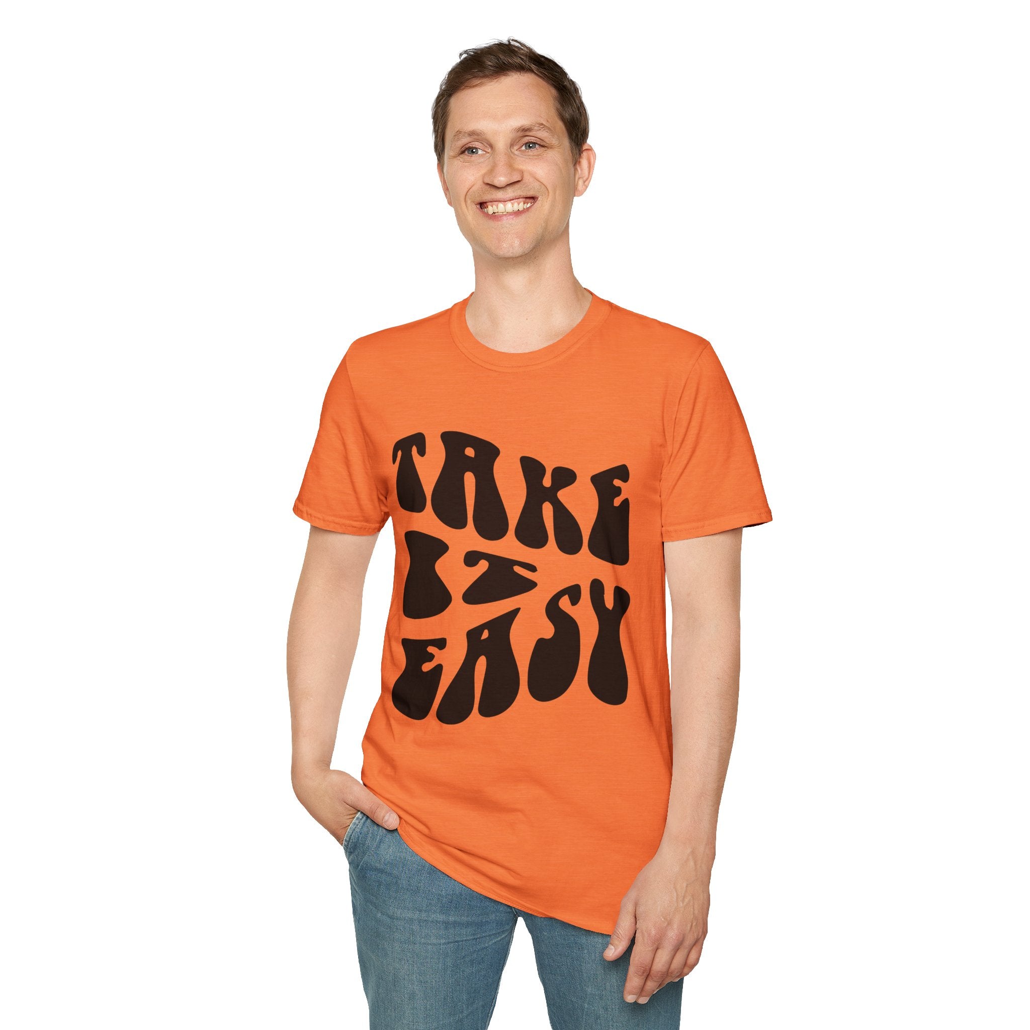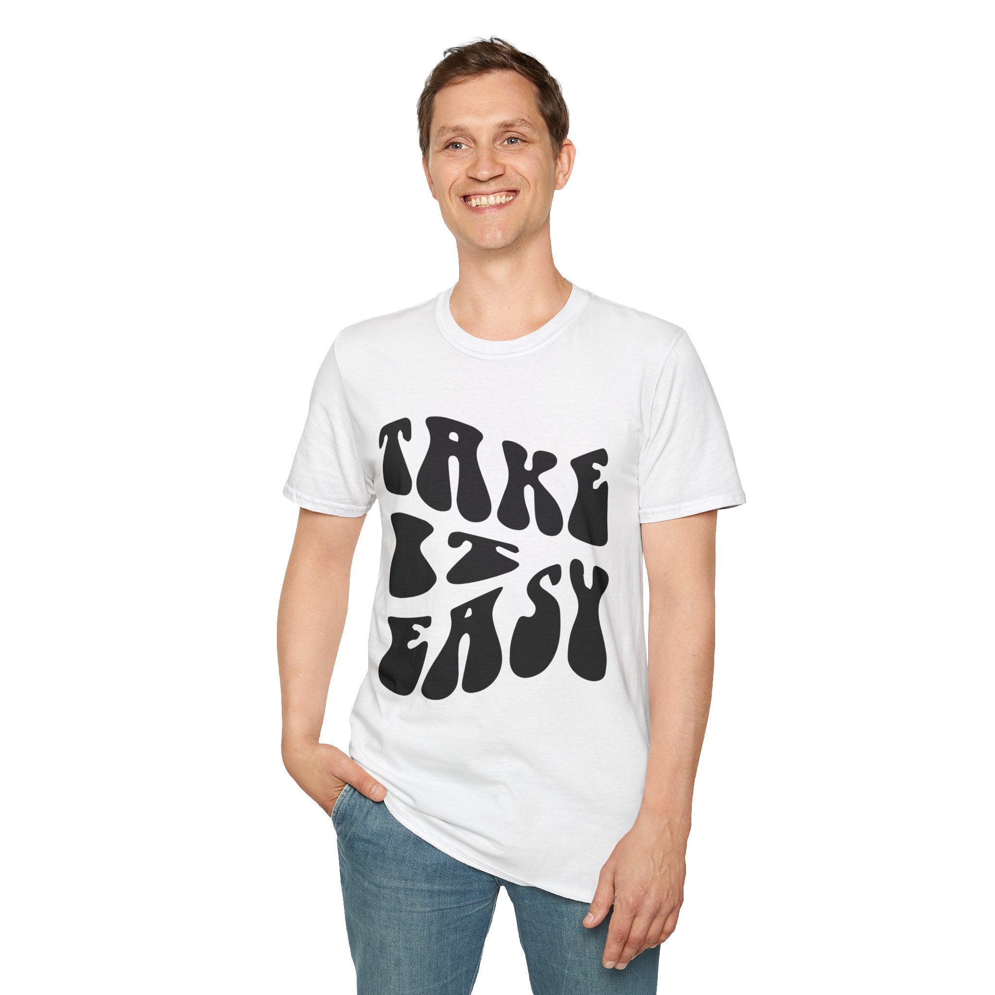 Retro 'Take It Easy' Printed English quotes Unisex Softstyle T-Shirt | Chill Vibe Apparel